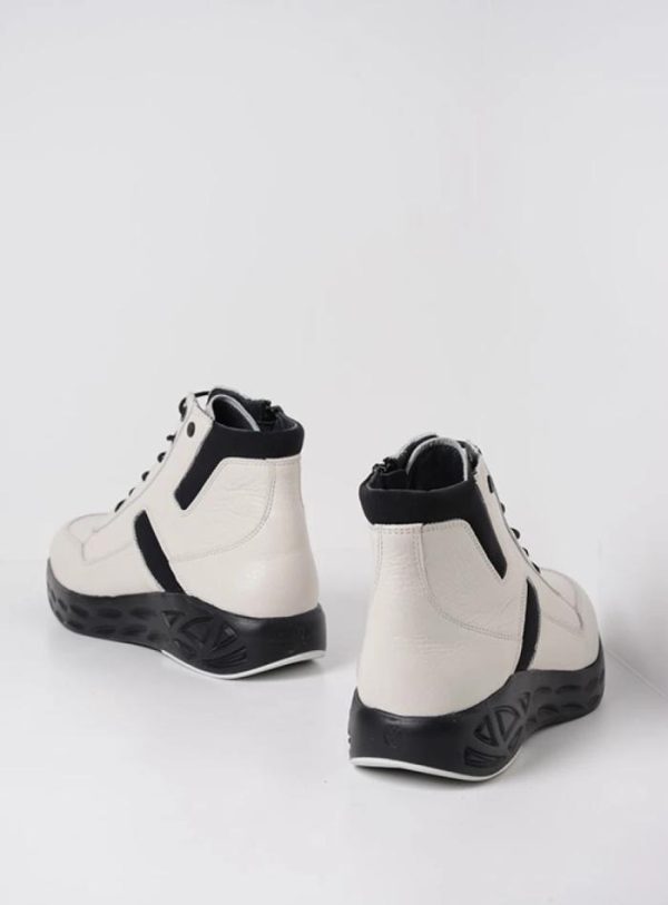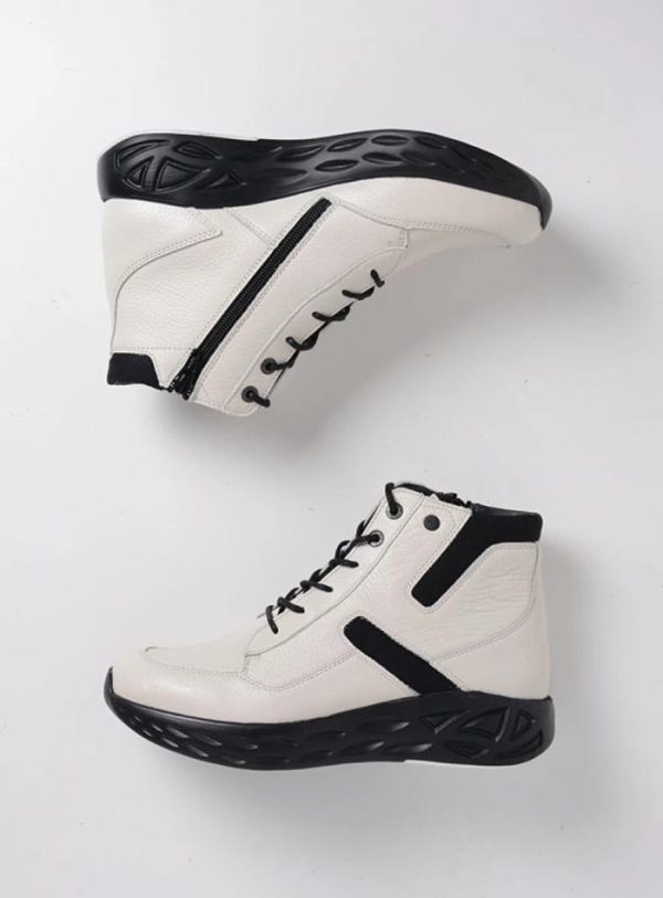 Stoer, stevig en sportief: de Leap gaat jou een heel comfortabel najaar bezorgen. De veter-rits-combinatie maakt in- en uitstappen een fluitje van een cent. Met de veter kun je de boot bovendien perfect afstellen om je voet en enkel. Aan de bovenkant zie je een verdikking, de polsterrand, dit is een soort kussentje voor je enkel dat het snijden van de rand in je huid voorkomt. De zool is licht en superdempend; ideaal voor vrouwen met hielspoor en eigenlijk voor iedereen want je krijgt zo minder snel vermoeide voeten. Voor loopt de zool iets op. Die oplopende neus zie je veel bij Wolky en die is er niet voor niets, want hierdoor wikkel je je voeten moeiteloos af en dat maakt lopen makkelijker. Nog een pluspunt: de Leap is gemaakt op een ronde leest, de tenen hebben zo lekker veel ruimte. Kortom, wij hebben er alles aan gedaan om de Leap jouw ideale winterschoen te laten zijn!