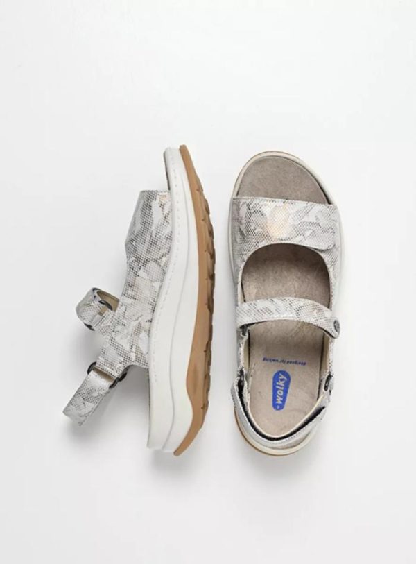 De Adura is een fantastische sandaal. De zool is bijzonder licht en is op zo’n manier gevormd, dat een juiste afwikkeling van de voet wordt gestimuleerd. Het voetbed is een typisch Wolky-voetbed dat uit drie lagen bestaat. Eerst een laagje kurk voor de nodige stevigheid. Dan een laag memory foam voor een goede demping. Vervolgens een suède bovenlaag die lekker zacht aanvoelt. De gesloten zijkanten bieden extra ondersteuning en stevigheid. De sandaal is op drie punten verstelbaar: zo weet je zeker dat de Adura perfect op jouw voeten af te stellen is. Gebruik je steunzolen? Dan kom je met deze sandaal goed weg. De zool is uitneembaar. Superhandig!